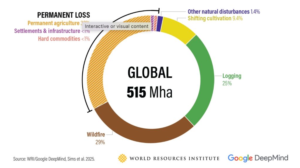 (図)2001~2015 年の森林減少の原因別ランキング( 世界資源研究所より作成, 2020)