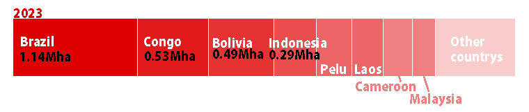 参考:2023 年の森林減少面積の国別ランキング(世界資源研究所,2024)
